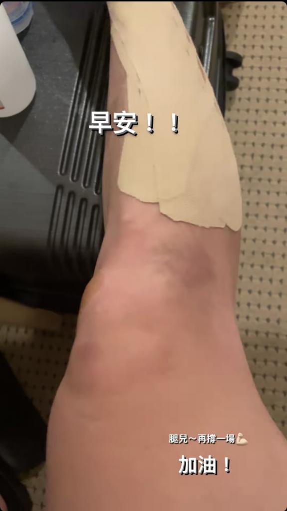 ▼今日早晨戴資穎在IG上PO出她的小腿照為自己打氣,上面貼滿了肌貼顯示出賽程的勞累。(圖/截自戴資穎IG)