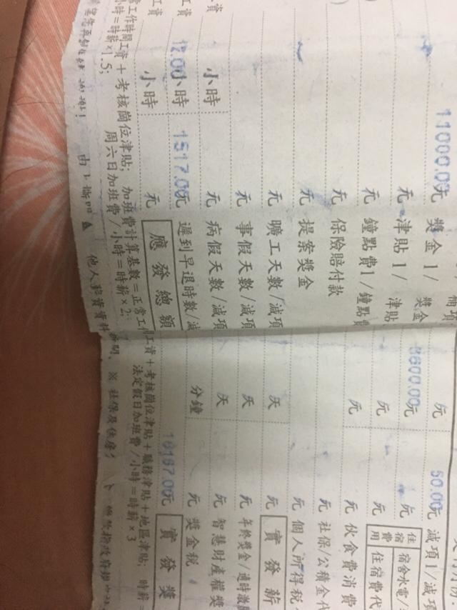 一、這是我的工資單,大家算一下,看最後還剩多少錢?除了房子,加車費,還要解決一頓飯,早餐加上晚餐,中午在公司吃。