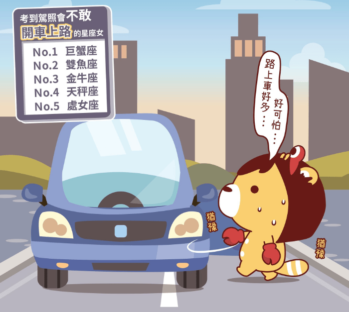 金牛、處女跟天秤剛考到駕照的時候會不敢上路,因為覺得自己不夠熟練,對於路上的狀況也還無法掌握,通常一開始會需要有會開車的人陪他們練車一陣子,等到他們對自己有信心了,才敢開車上路!