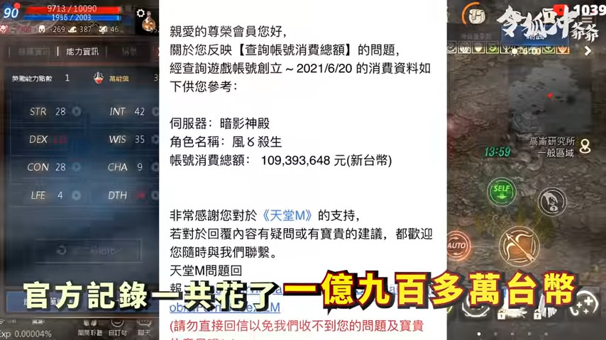 加上額外平台購買的點數及商品多達3000多萬,目前該玩家已經灑了約1.4億元在手遊《天堂M》之上,引此遊戲公司也特別寄送尊爵信感謝他的支持與愛戴。