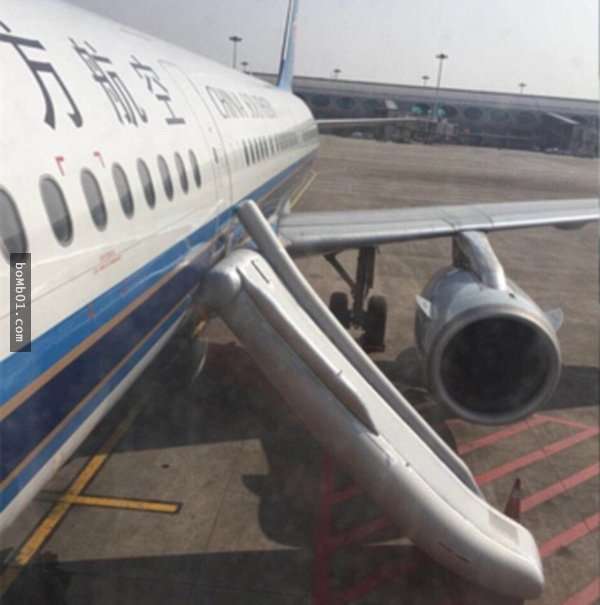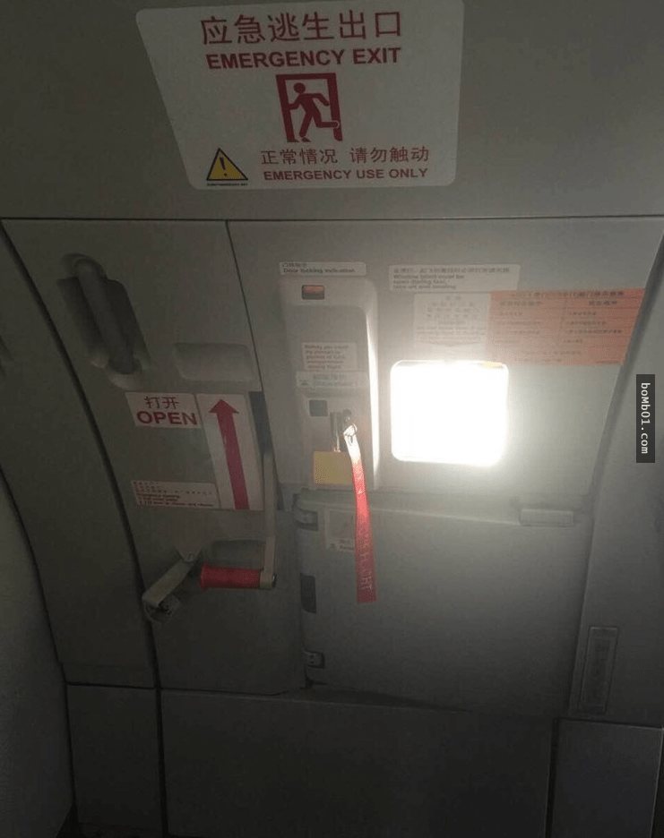 就在她走出裡廁所隊伍沒多遠的地方時,「幸運地」看見機艙門邊有一個紅色的把手。當下誤以為這就是「廁所門」的婦女欣喜若狂地扭開把手,可沒想到「嘶」一聲後打開的竟然不是想像中的廁所,而是飛機左側艙門旁的應急滑梯啊!