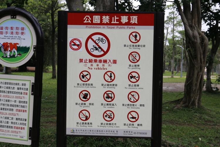 大家出門在外對這樣的告示應該不陌生吧!尤其是在公園,因為除了大人小孩,也會有很多毛孩出沒為了環境維護,多半都會立告示告訴民眾哪些是不要做的事情避免危險、意外發生