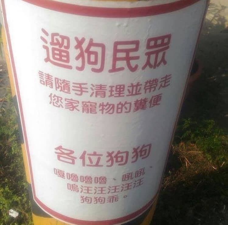 只見照片中,除了告訴民眾遛狗不留狗便外,下面竟然還有一排專門給狗狗的「狗語告示」