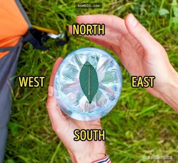 10.將一片葉子放在水面上,然後在上面放一根針,製作指南針:先在褲子上磨擦針的一端,放在葉子上後,磨擦的那一端指向北方。