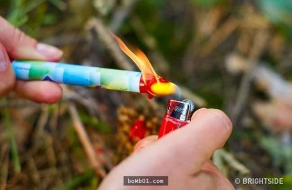 3.點燃蠟筆:蠟筆可以用來點火,或者當成蠟燭使用。一支蠟筆能夠燒30分鐘。