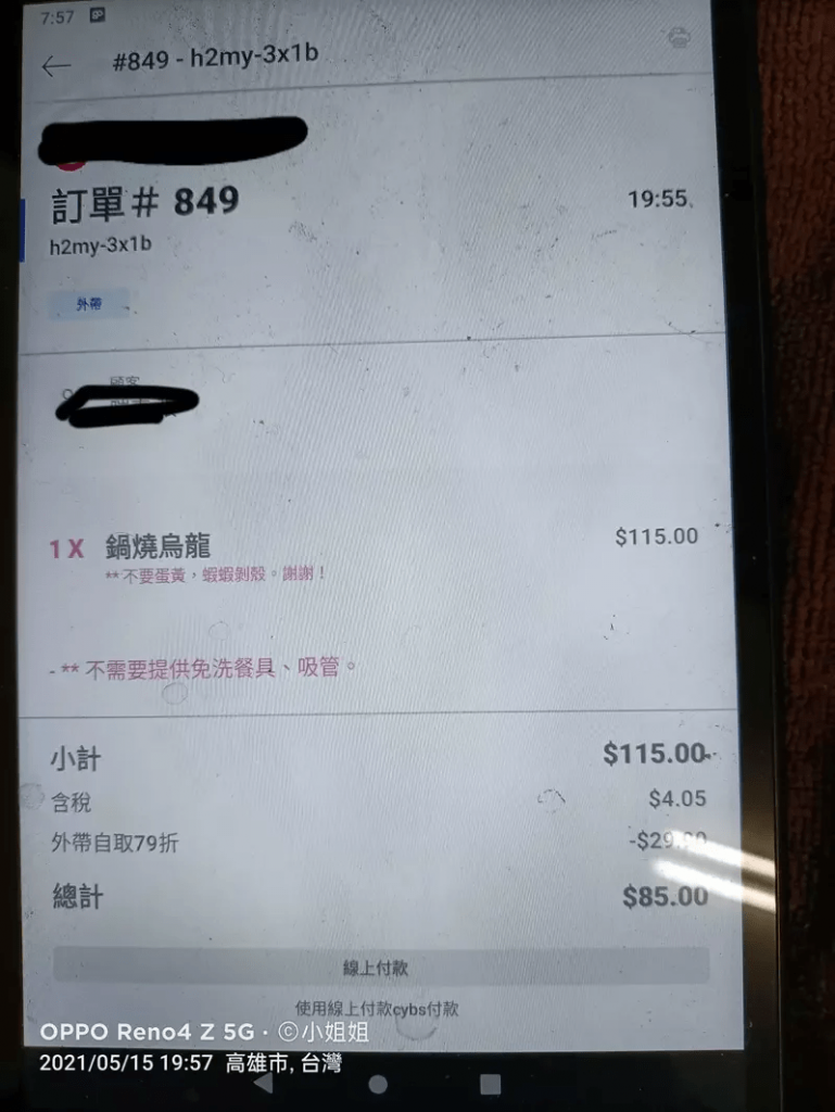 一名網友在臉書社團發文,他經營一間小吃店,也與外送平台合作,近日接獲一筆外帶自取訂單,訂餐項目為鍋燒烏龍,而備註則寫著「不要蛋黃,蝦蝦剝殼,謝謝」。