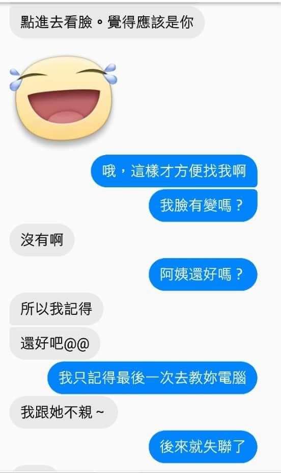 妹妹比他小6歲,他們最後一次見面,是男生到女生家去教她電腦,之後就失聯了,連男生的媽媽也找不到她們母女,沒想到現在竟然通過臉書重新連絡上。