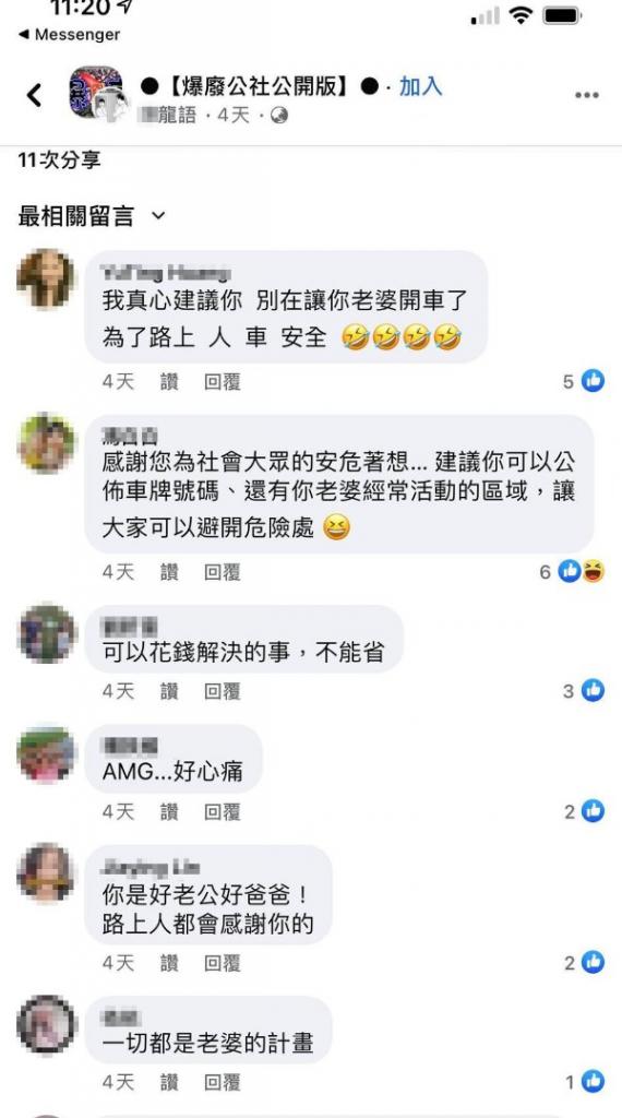 男網友透露,替老婆包車旅遊,都是為了老婆的人身安全著想,並顧及了社會大眾的行車安全,深思熟慮過後的決定。沒想到岳母聽完以後竟然反過來安慰她說「不然你帳號給我好了,我也出一半包車費」。