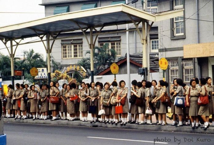 穿著清一色的制服、留著差不多髮型的女學生正在等公車。