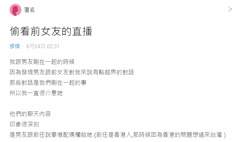 (前任是香港人,那時候因為香港的問題想過來台灣)
