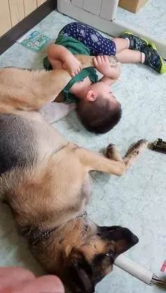 汪星人跟嬰兒簡直就是跨物種情感的最好代表,對於初生的嬰兒來說,他們對世界充滿了好奇,完全不害怕比自己大好幾倍的汪星人;而對於成年的汪星人來說,它們已經擁有了豐富的閱歷,和對待新事物的經驗,甚至不需要過多的引導。