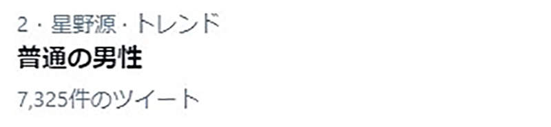 推特熱搜:「普通男性」、「星野源」