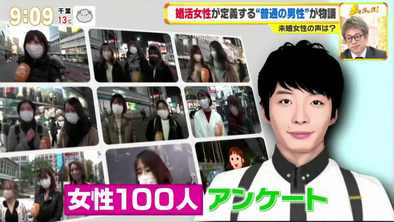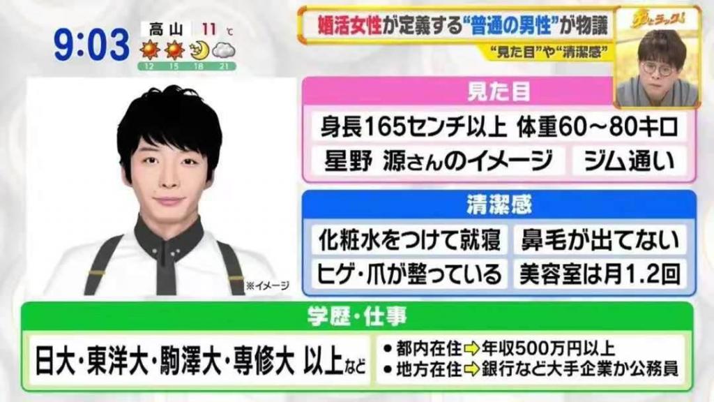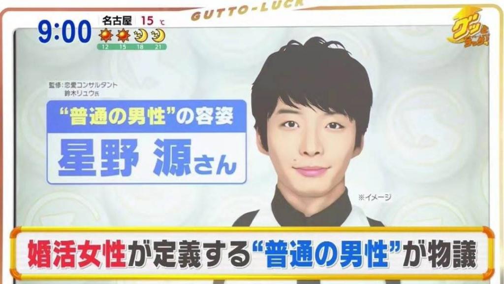 去年12月,日本TBS早間資訊節目《好運!》中,日本的相親女性對普通男人的定義至少是像星野源一樣。