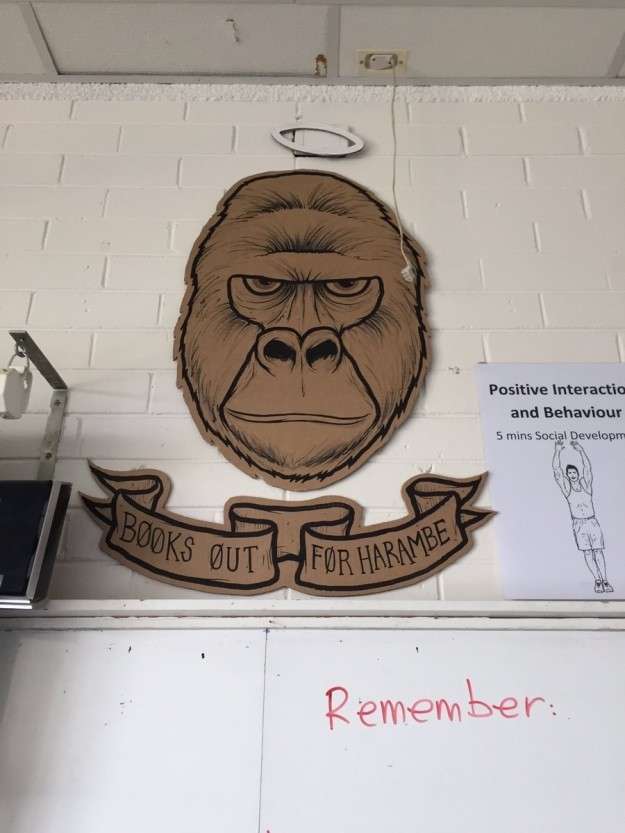 「為了Harambe(因小男孩掉進柵欄最後被處 決的大猩猩),把書拿出去!」