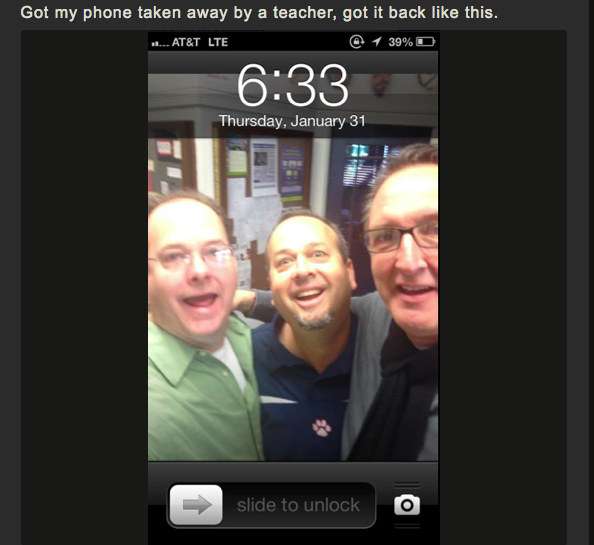 「我手機被沒收,從一位老師手中拿回來後,發現變成了這樣。」