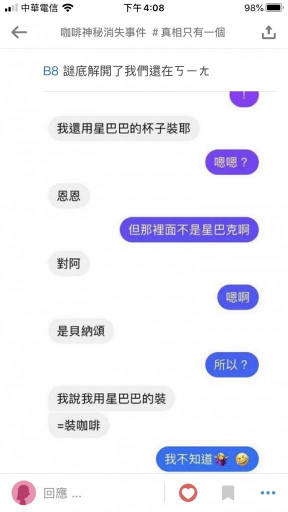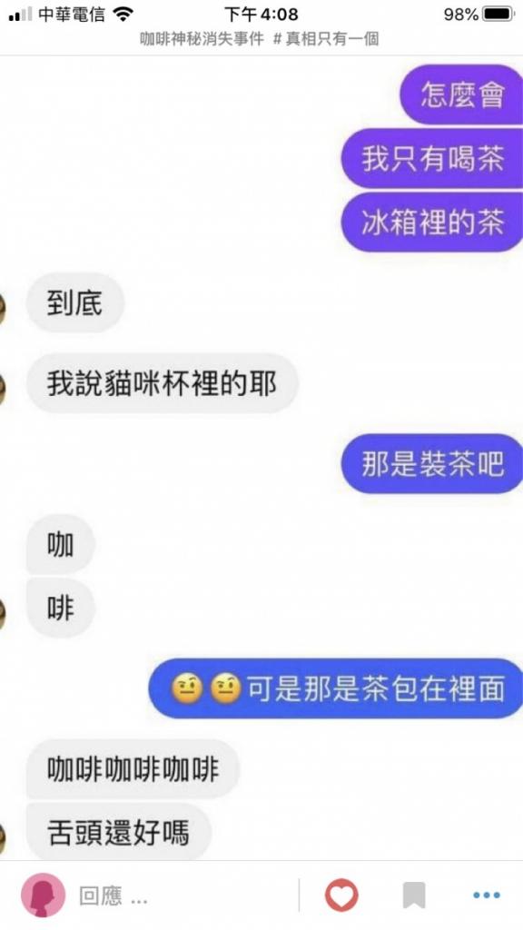 一位網友在「Dcard」上PO文,她一大早被室友質疑,是不是每天都都喝她的咖啡?原PO喊冤「我不喝咖啡的人啊!」但室友堅持咖啡已經消失好幾次,家裡就兩個人,還會有誰?兩人一陣雞同鴨講,最後才發現,是原PO喝得沒錯,但是她以為自己在喝水果茶!