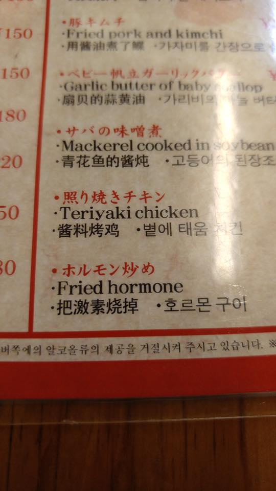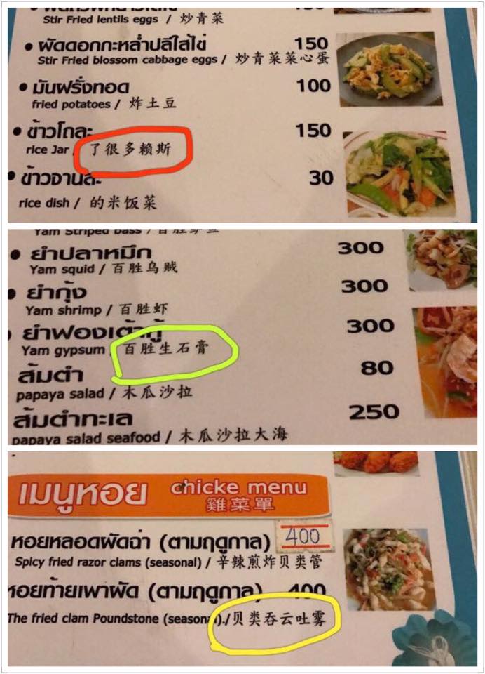 「Google Translate」總是解決了許多人對外語不解的煩惱,但機器的翻譯畢竟有限,翻譯出來的字讓人覺得搞笑又有趣。有位網友在日本旅行的時候去到一間有‘華人氣息’的餐廳,但是裡面菜單里的食物名都是用機器翻譯成中文,讓大家笑到流淚XDD