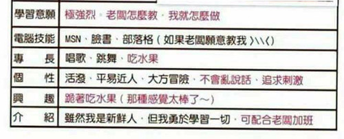 她在臉書社群中po出朋友應徵時,所碰到的傻眼狀況: