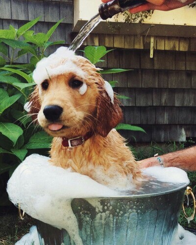 但要記得不要使用來路不明的沐浴乳,因為有些沐浴乳可能會傷害狗狗的毛皮喔