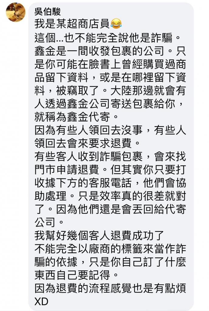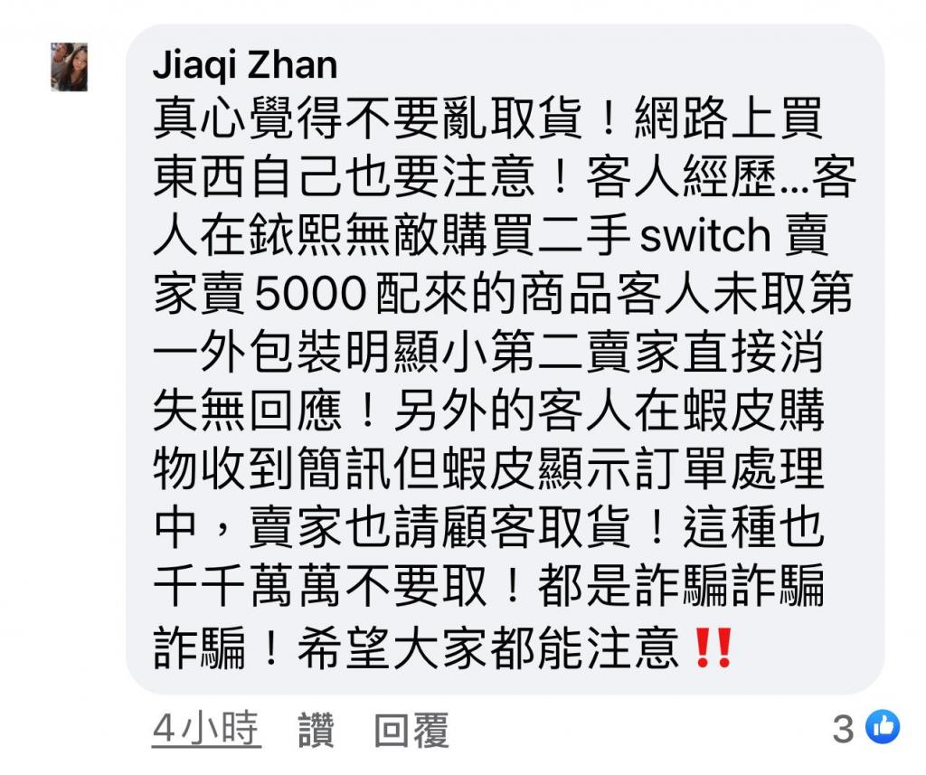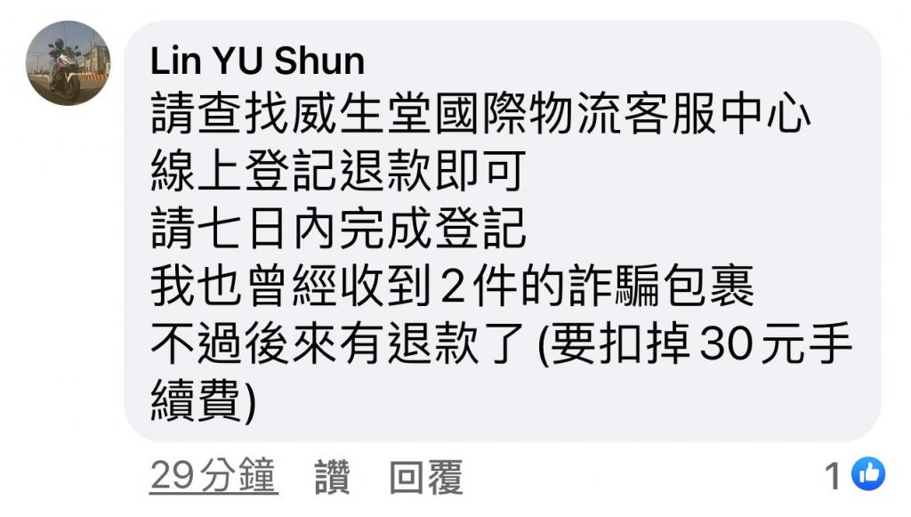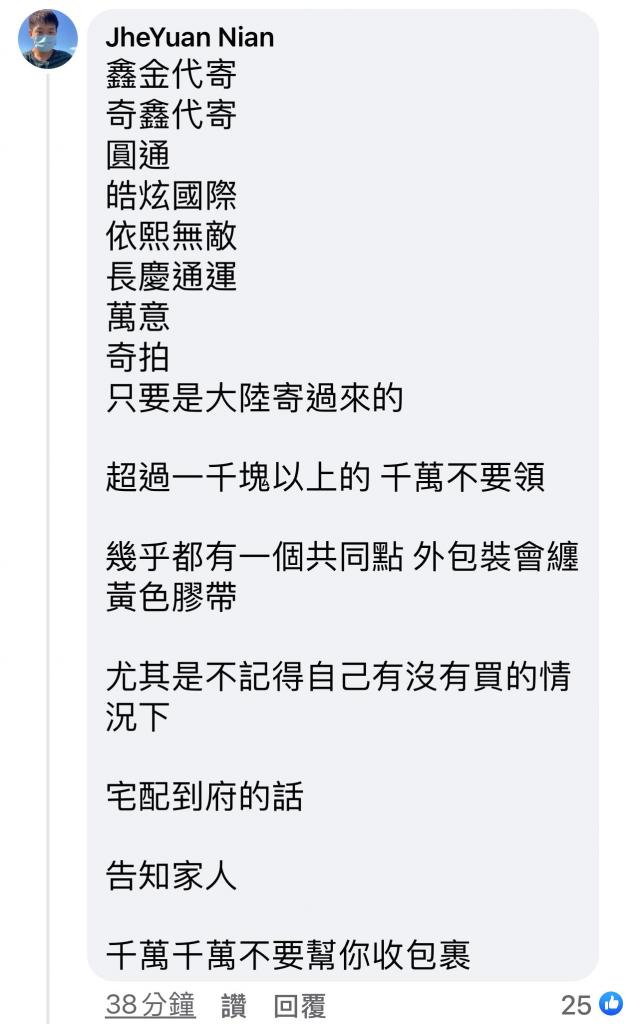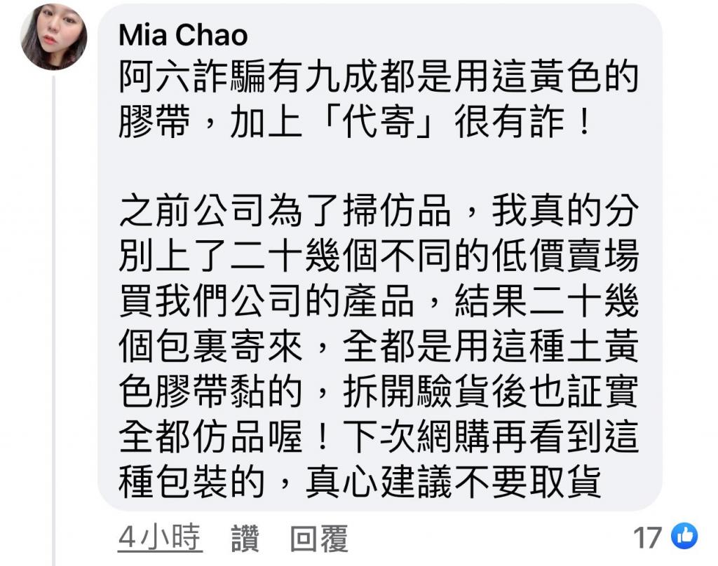 「詐騙會貼一種類似淘寶的標籤,然後廠商名稱固定幾種,很好分辨。」