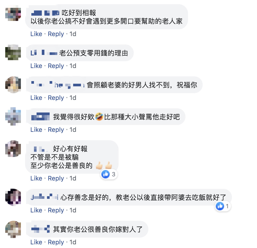 對此,網友們看完後都被暖到了,紛紛留言說,「原諒他吧!有愛心的人最可愛」、「因為老公善良,所以妳才選到他的,不是嗎」、「總比那種會大小聲罵回去的好吧」、「不管怎樣,都證明妳嫁了一個好老公啊!」