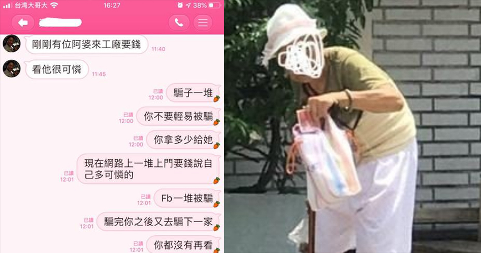 因為她都已經這麼老了,不管是真的假的,都代表她有需要被幫助,更何況那些也不過是吃頓飯的錢而已,我們有能力就幫一點是一點。」