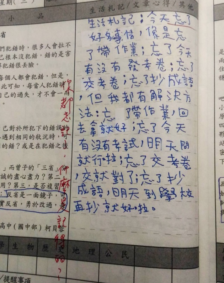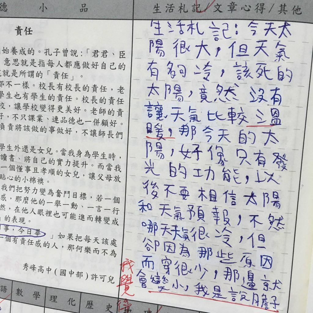 有位網友覺得國三弟弟寫的生活札記很好笑,於是決定把聯絡簿的內容上傳到網路給大家看,沒想到還真的引起大家的注意!