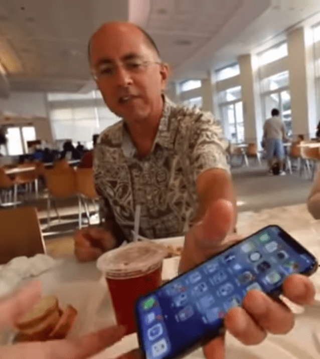 之前她與媽媽跟著爸爸進入蘋果總部,期間拍攝了園區內部狀況,還在自助餐廳拿著爸爸的iPhone X介紹頁面。
