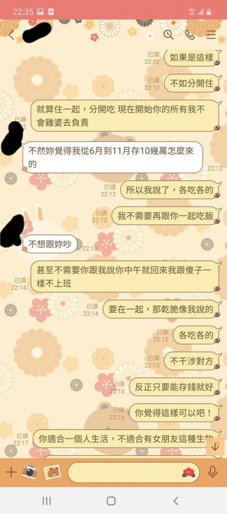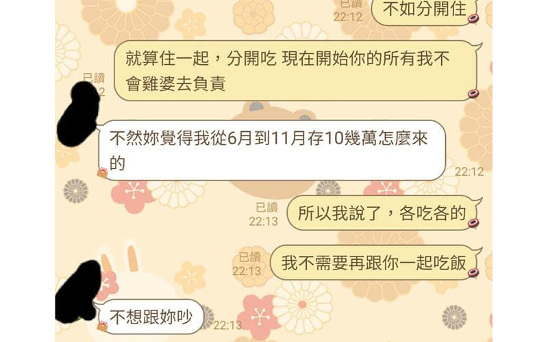 他跟我說他一個人一天晚餐之前只花100,今天我們兩個晚餐也只花100,米飯自己煮,就因為我習慣買些罐頭跟泡麵,有時中餐只能配罐頭(但是絕對不是囤非常多罐頭那種),或者之前有買牛排,那牛肉是整條也分裝好現在冰箱,只剩下三片,這些我都是自己花錢,我真不明白我到底錯在哪……誰能告訴我?