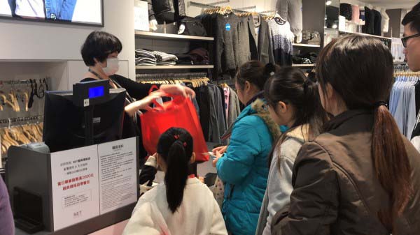 服務人員:「那件最近賣比較好,我幫您問問。」