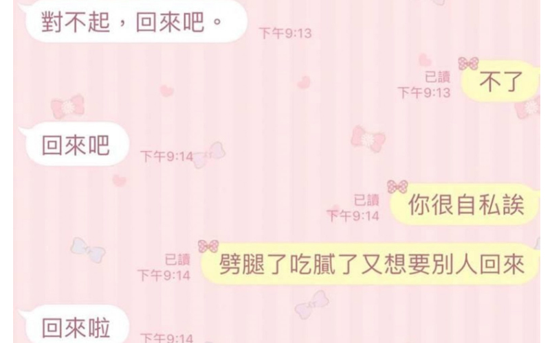 女方語氣冷淡回應男生的Line,「我不想復合」!