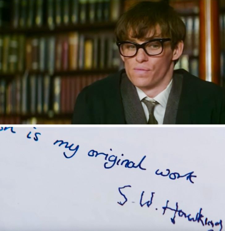 在《愛的萬物論》當中,許多道具都是史蒂芬霍金親自提供的真實物品,包括他的榮譽勳章和親筆簽名的論文。