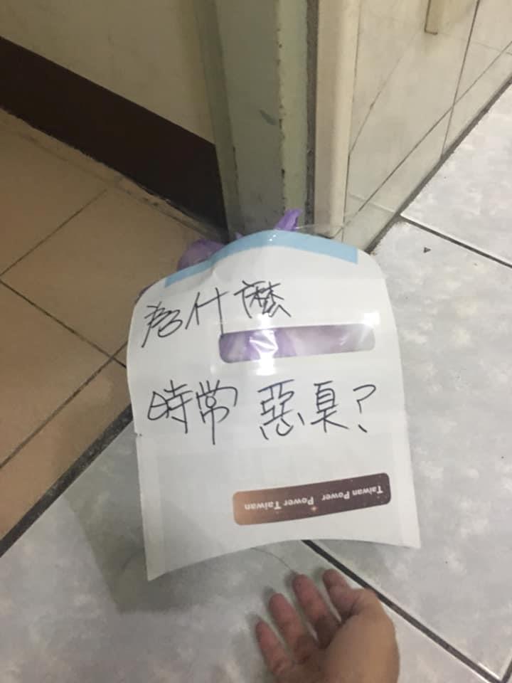 好!我不想理他們,過沒幾天看到他們把家裡垃圾放在樓梯門口,食物的湯流的滿地都是,我直接把那張貼紙貼在他的垃圾上面!