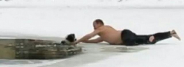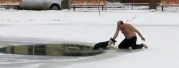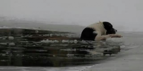 冬天時有一隻狗狗不小心跌進了結冰的池塘里,牠趴在岸邊努力支撐著,眼神充滿了恐懼。許多民眾都在圍觀,但卻不敢靠近上前搭救,深怕再多往前一步,冰就會碎裂。