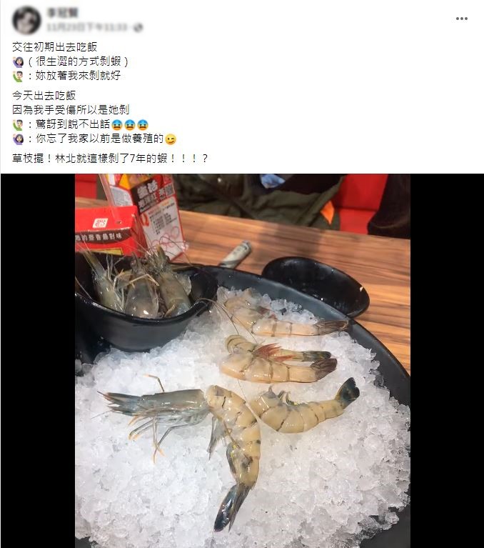男網友透露,女友看到驚訝不已的他,竟然直接吐槽說「你忘了我家以前是做養殖業的?」讓他當下傻眼大嘆「草枝擺!林北就這樣剝了7年的蝦?」