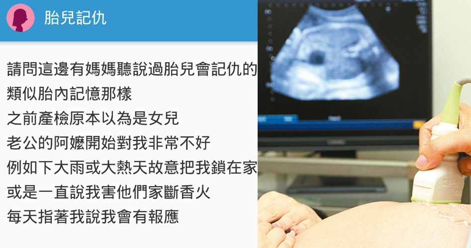 像是很多媽媽討論區會出現的「胎內記憶」,或是讓胎兒聽音樂有助成長等等,都引起很多共鳴,日前就有一名媽媽在社群平台「Dcard」發文說,自己懷孕之後原本覺得是喜事,不過產檢初期結果,似乎是懷上女生,讓老公的阿嬤相當不滿意。
