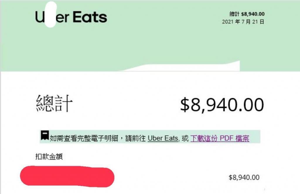 今天我媽慌慌張張的跑來問我,怎麼Uber eats下單了8000多,我想說怎麼可能我又不是用他的帳戶叫餐,結果我媽就給我看了頁面,夭壽咧!點進去一看,消費時間下午3點多,我媽還在居家上班,哪來刷那麼多錢啊!真的有夠傻眼!