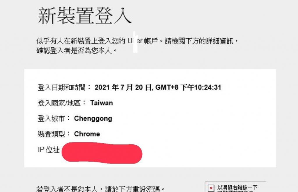 對方的裝置登入城市在一個叫成功的地方,上谷歌地圖查在桃園八德,此圖下方有個「若不是您本人,請重設密碼」點進去就是會跳回上圖,然後一直鬼打牆讓人一肚子火。