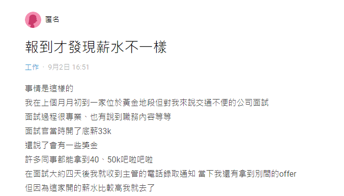 「我之前面試後都會在用訊息確認薪水然後截圖 保護自己」