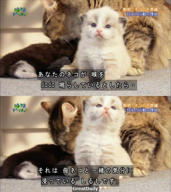 據說幼貓透過這種特別的聲音跟媽媽溝通,為了避免受到生命危險因此通常不會讓牠其動物聽到,所以飼主要是聽到這個聲音……