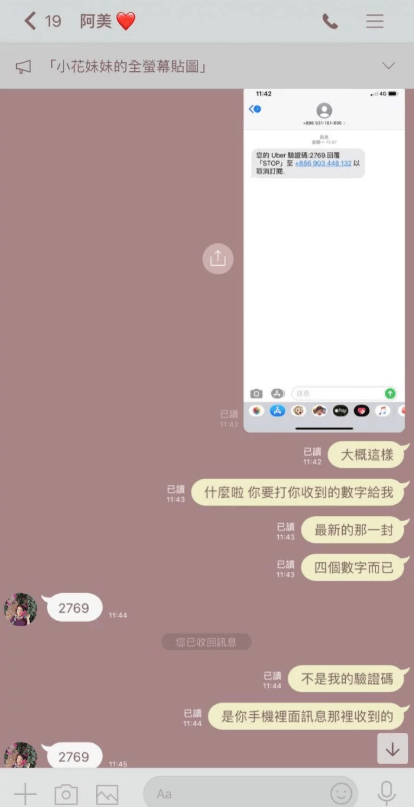 我想跟他拿uber的驗證碼👇