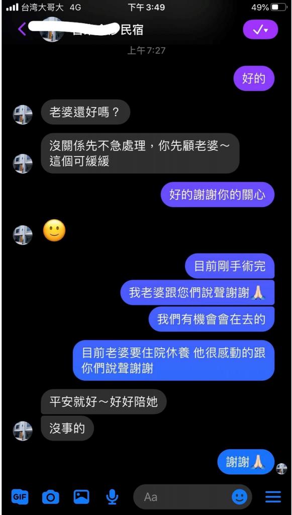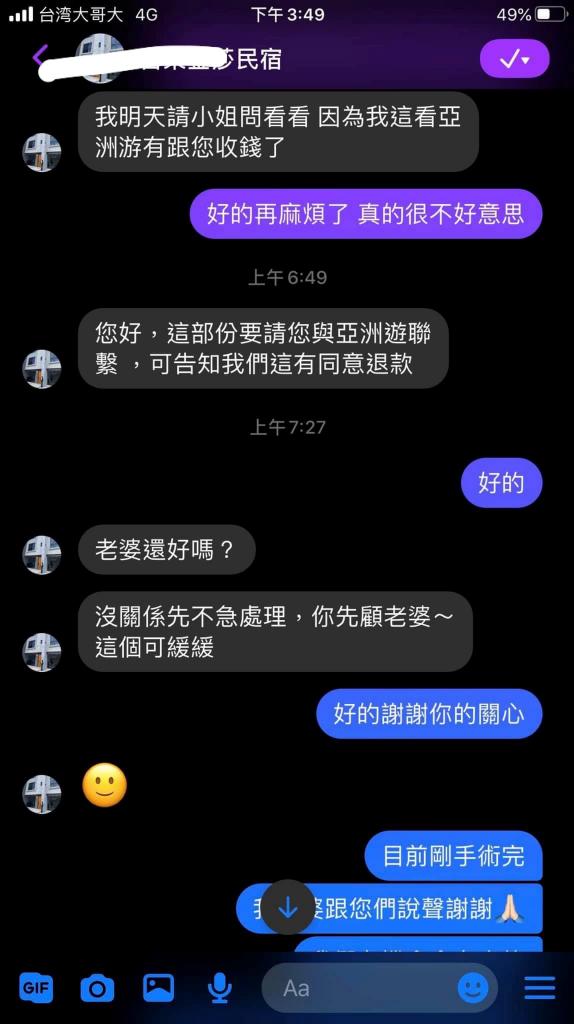 原以為這麼突然的事,通常店家應該都不會退款之類,畢竟大家都要做生意,沒想到民宿的回應如此暖心…