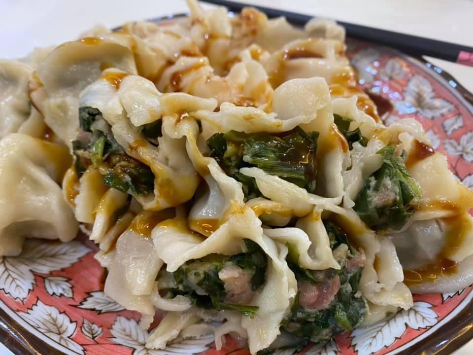「你的餃子也不及格呀裡面的菜怎麼ㄧ大根,沒切細然後你的不沾鍋可能是壞掉了要淘汰,不然會吃進毒素喔」