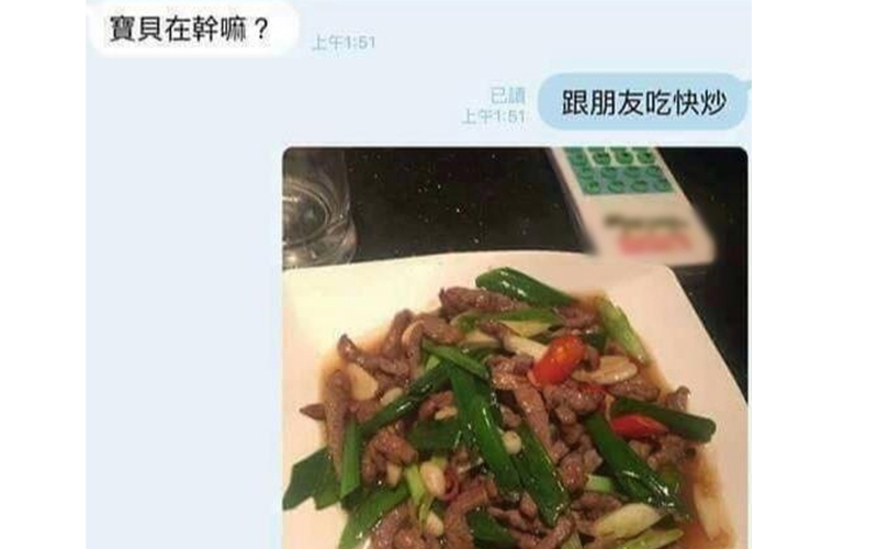 女友半夜查勤「你在哪裡?」他回傳一張吃熱炒照片…女友秒看穿一切:他GG了!