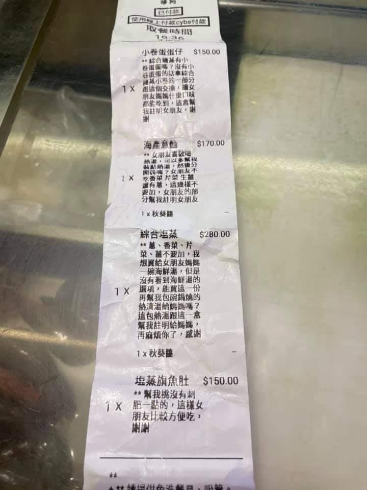 然而卻有人寫備註不手軟,落落長達兩百多字的備註,不知店家是否望「單」興嘆?