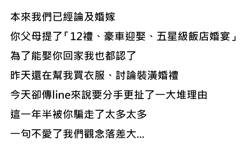 今天傳line來分手 說了一大堆理由