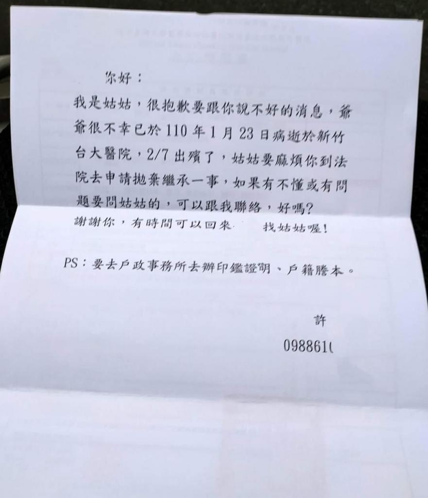 沒想到的是20幾年後的今天卻再度收到一封來自婆家的信件