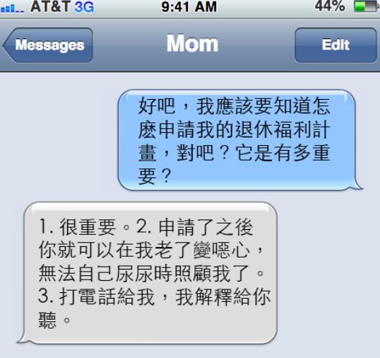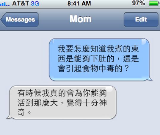 接下來我們看一看12條與媽媽的短信聊天對話,脫離了媽媽懷抱的人看了會有無限的感慨。