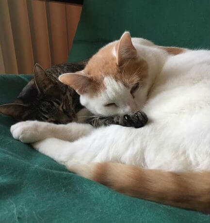 那位夥伴是隻可愛的小貓叫做小飛,小飛因為小腦發育不全,導致她走路會一拐一拐的……但是小飛可愛的模樣早就擄獲了克莉絲汀的心❤❤