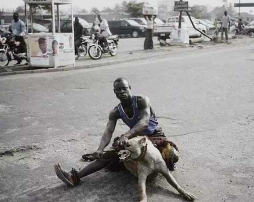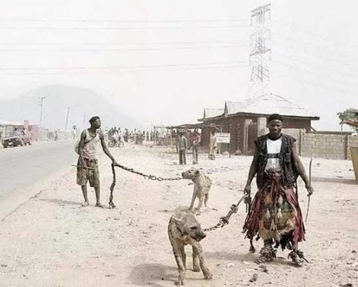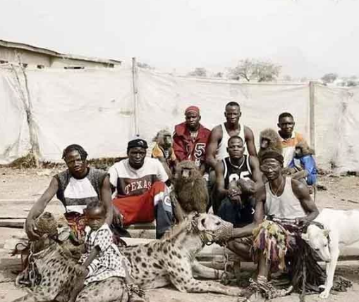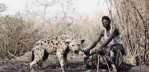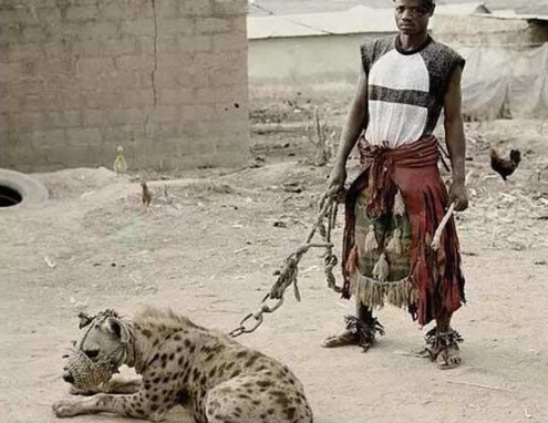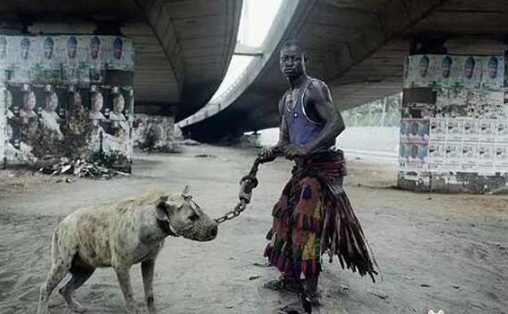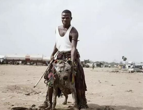 他們用粗重的鐵鏈牽着兇悍鬣狗在街頭表演,以此為生,他們還順便銷售一些傳統的藥品。